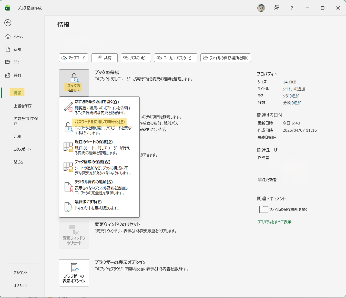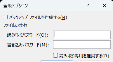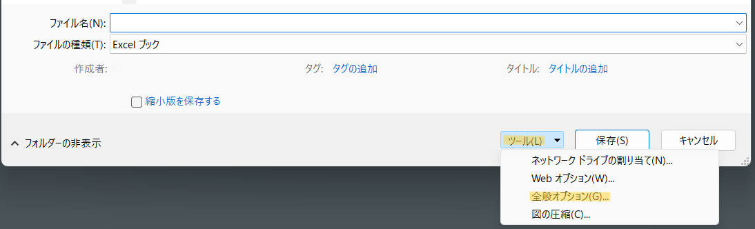 結論から言うと、「名前をつけて保存」する時の「ツール」内「全般オプション」からパスワードをかけることができます。具体的にはこの後説明していきます。
