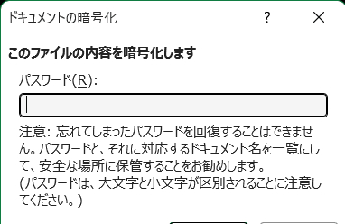 パスワード入力しないと作成した文書を開くことができません。