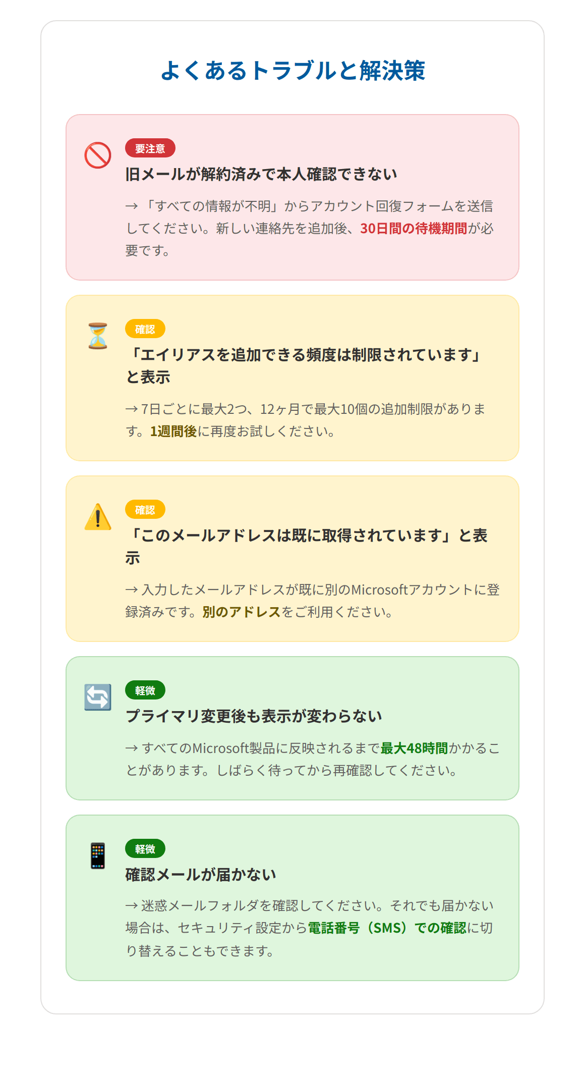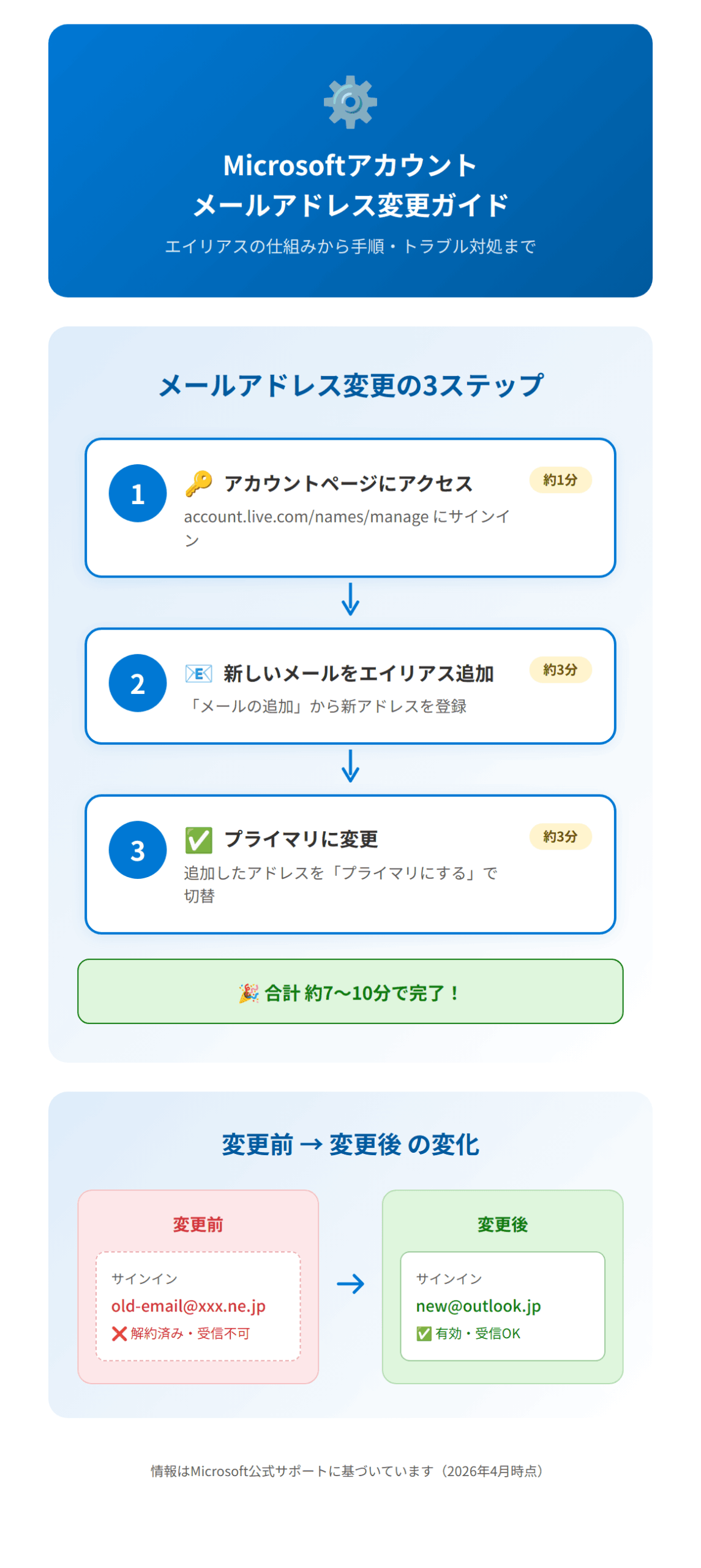 Microsoftアカウントのメールアドレスを変更するには、「エイリアス」という仕組みを理解するのがポイントです。