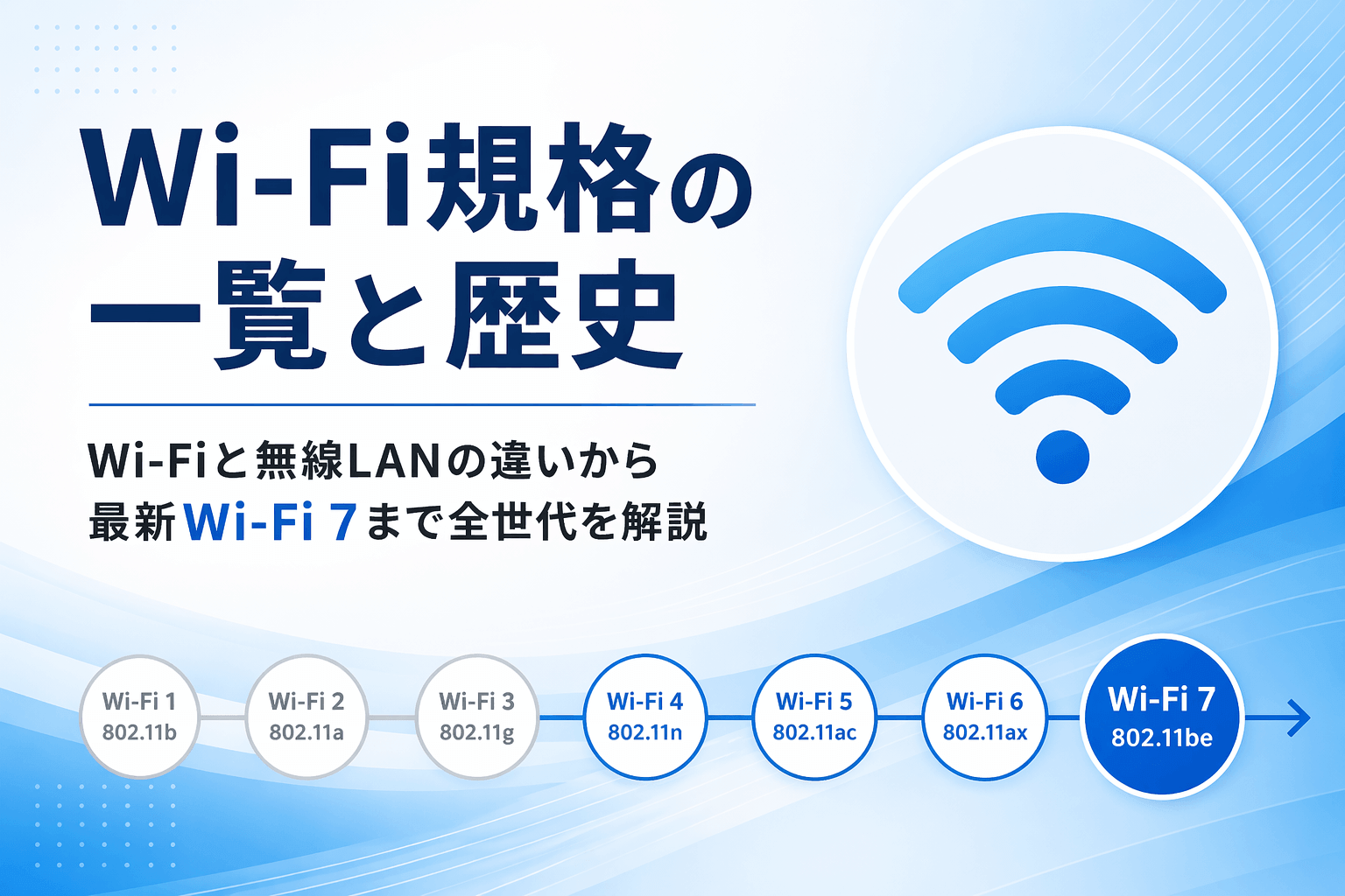 (Wi-Fi規格の全体像や歴史を一通り知りたい方は、先に Wi-Fi規格の一覧と歴史 の記事に目を通していただくと理解がスムーズです。)